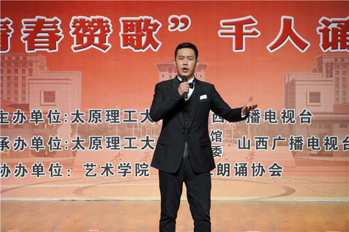 山西广播电视台党委委员、副总编辑罗庆东,山西广播电视台交通广播总监陈湘;我校党委常委、副校长张献明出席大会。学校相关部门(单位)负责人、省内著名节目主持人、朗诵家和师生代表等参加了诵读活动。